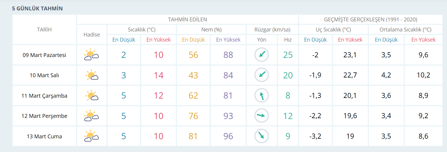 Meteoroloji Genel Müdürlüğü olarak yapılan değerlendirmelere göre: Ülkemizin doğu kesimlerinin parçalı ve çok bulutlu, Rize ve Artvin kıyıları yağmurlu, yüksekleri karla karışık yağmurlu, Van, Hkkari ile Şırnak çevrelerinin kar ve karla karışık yağmurlu geçeceği diğer yerlerin az bulutlu ve açık geçeceği tahmin ediliyor.