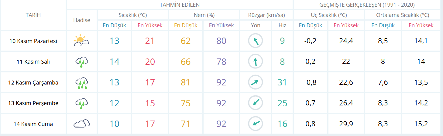 Parçalı bulutlu geçeceği tahmin ediliyor. Sabah ve gece saatlerinde bölgenin iç kesimlerinde pus ve yer yer sis bekleniyor.