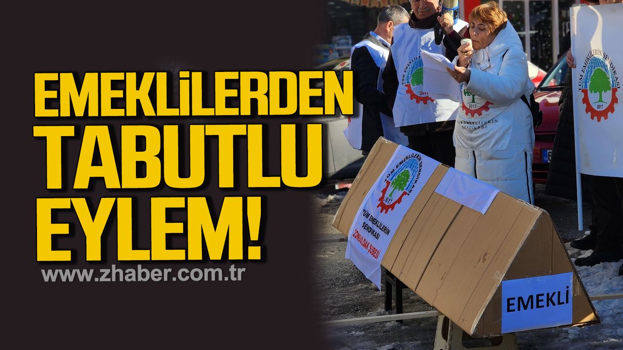 Sendika üyeleri, emeklilerin yaşam koşullarına dikkat çekmek için temsili olarak “emekli tabutu” taşıdı.