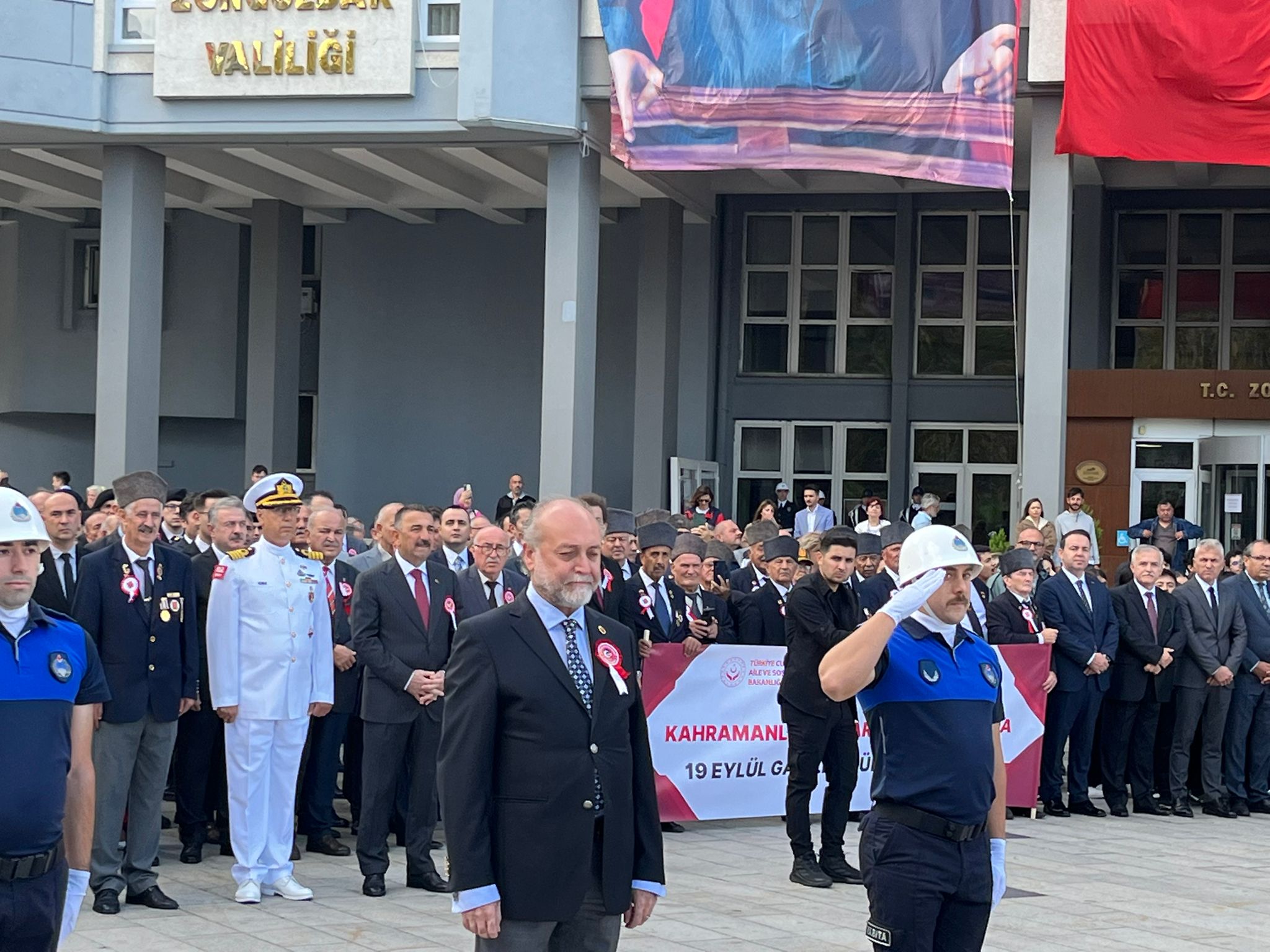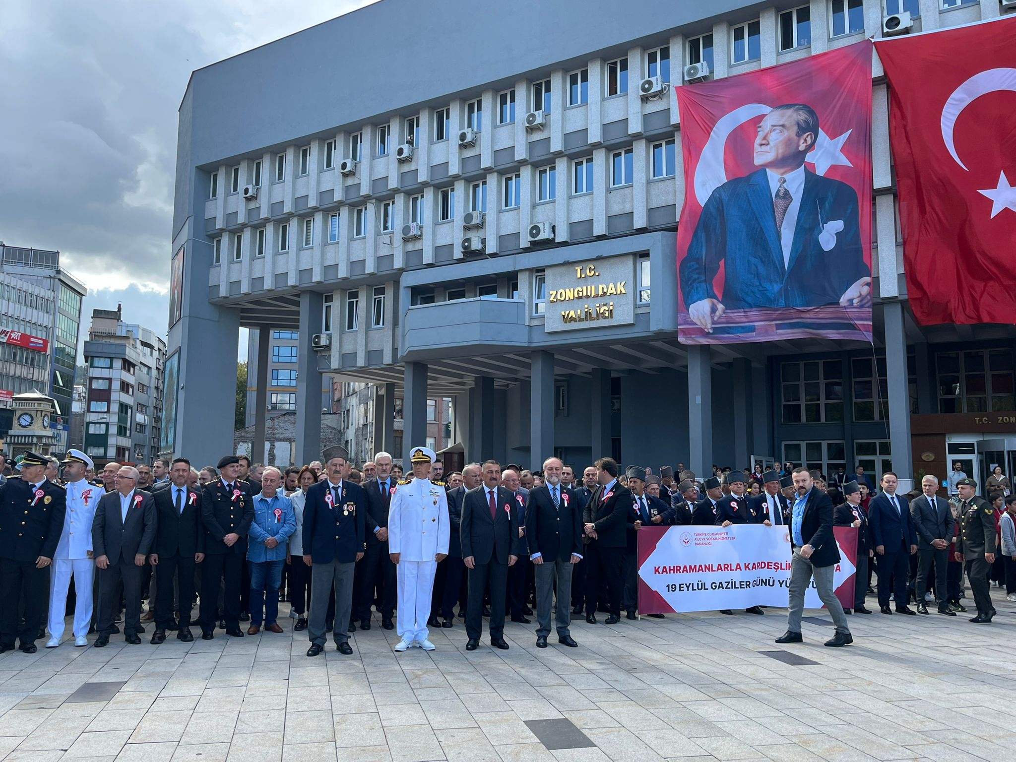 Zonguldak’ta 19 Eylül Gaziler Günü nedeniyle Valilik önünde tören düzenlendi. Törene; Zonguldak Valisi Osman Hacıbektaşoğlu, Zonguldak Belediye Başkanvekili Atınç Kayınova, CHP Zonguldak İl Başkanı Devrim Dural, AK Parti Zonguldak Merkez İlçe Başkanı Sezer Köroğlu, öğrenciler ve çok sayıda vatandaş katılım sağladı.