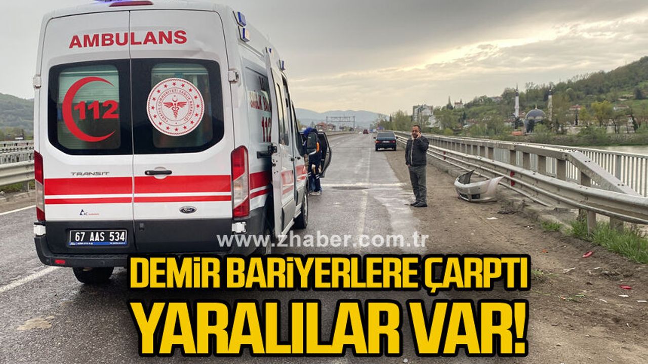 Zonguldak'ın Gökçebey ilçesinde yağmur nedeniyle kayganlaşan yolda demir bariyerlere çarpan otomobilde bulunan 4 kişi yaralandı.