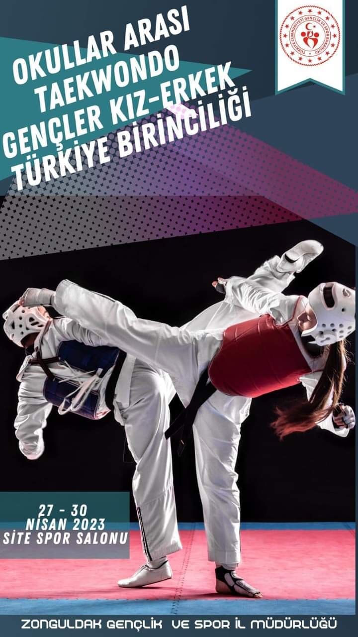 Zonguldak Gençlik ve Spor İl Müdürlüğü ve Taekwondo il Temsilciliğinin ev sahipliği yapacağı Okul Sporları Gençler Taekwondo Türkiye Şampiyonası 27 Nisan Perşembe günü Saat 14. 00’de Site Kapalı Spor salonda başlayacak.