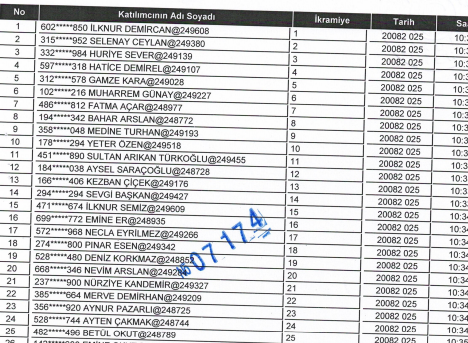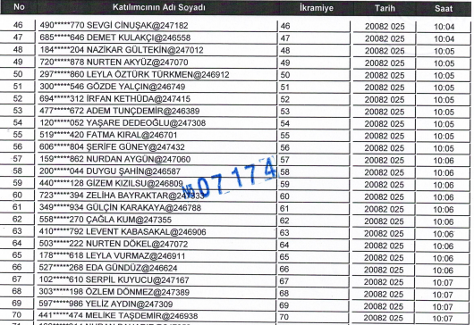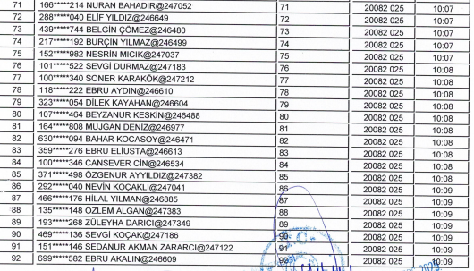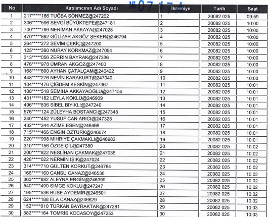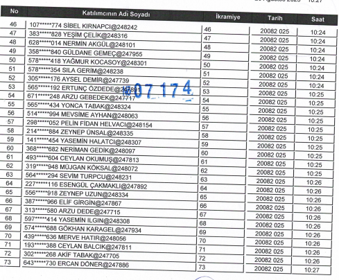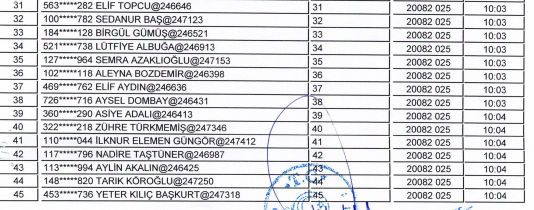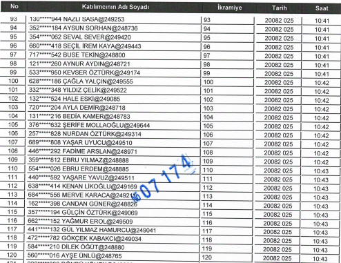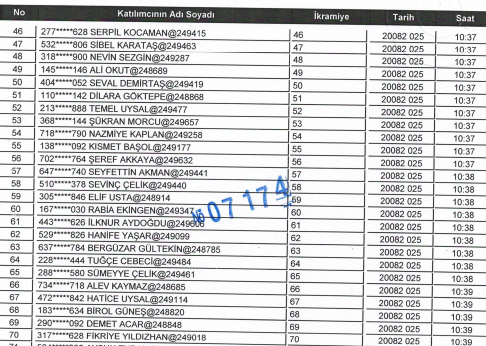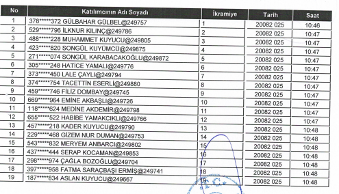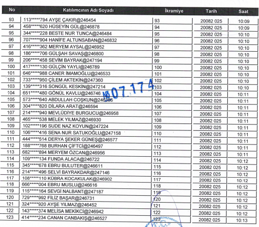 MERKEZ İÇİN KURADA ÇIKAN 123 KİŞİ ŞU ŞEKİLDE: