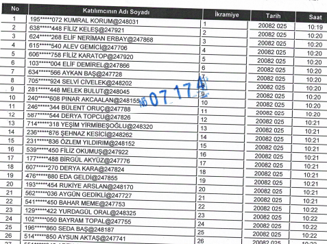 KİLİMLİ İÇİN KURADA ÇIKAN 25 KİŞİ ŞU ŞEKİLDE: