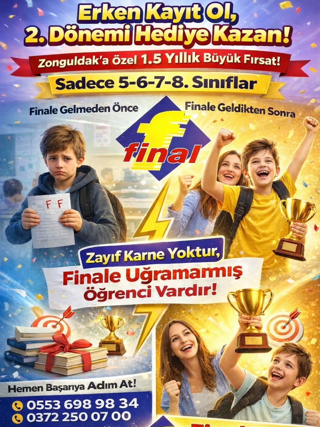 Türkiye’nin köklü ve güvenilir eğitim markalarından biri olan Yeni Final Zonguldak Eğitim Kurumu ve AmericanLIFE Dil Okulları, sadece 5,6,7 ve 8.sınıflara özel fırsat sunuyor.