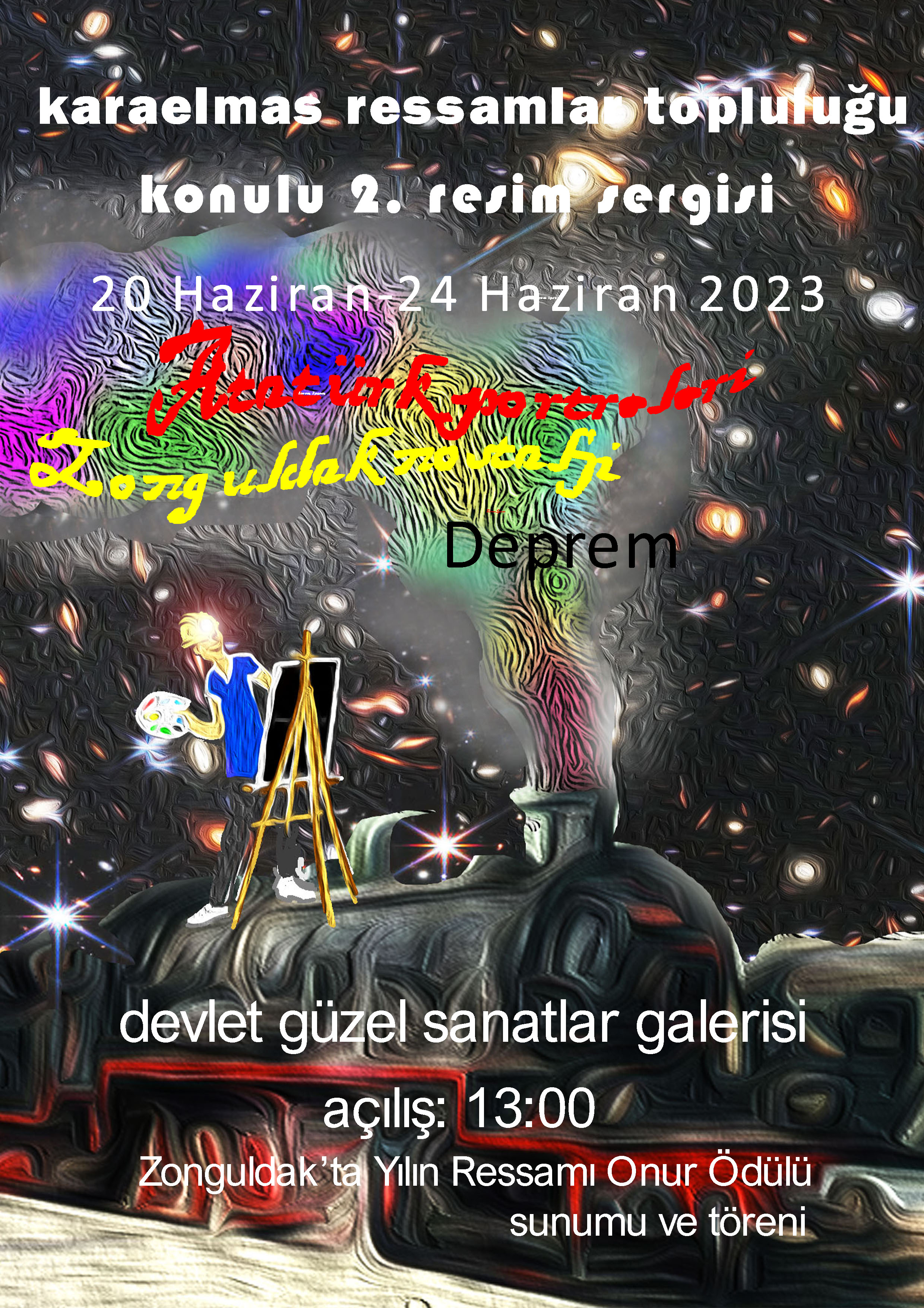 Geçen yıl “Ve Zonguldak” adı altında başlattıkları genelde Zonguldak temalı konulu resimlerin bu yıl ikincisini yeni resimlerle ‘Nostalji Zonguldak’ temasına taşıyan topluluk, iki yeni konu ile daha Zonguldaklı sanatseverlerin karşısına çıkacak. Cumhuriyetin 100. Yılı dolayısı ile ‘Atatürk Resimleri’ ve bu yıl yaşadığımız büyük felaketi unutturmamak için ‘Deprem’ konuları da sergi de yer alacak.